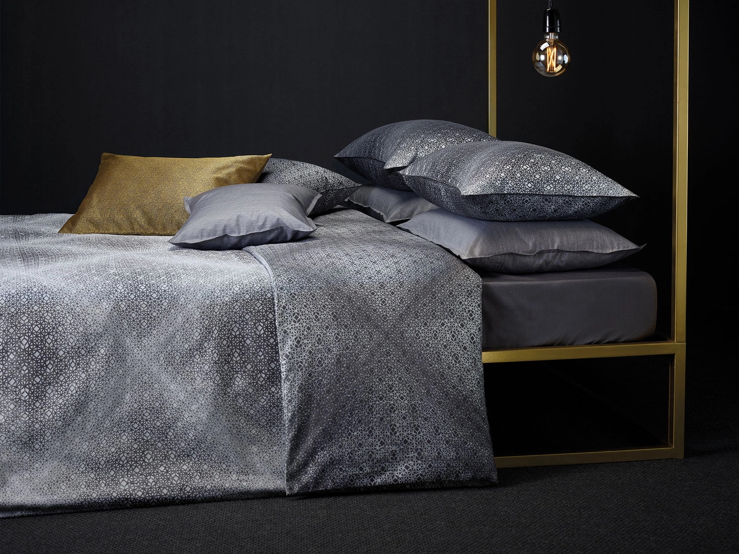 - Pościel Lattice 1813-0193 marki CB1882. Nowoczesny, delikatny motyw graficznej siateczki na tkaninie w kolorze stalowo-szarym. Misternie tkany wątek nadaje efektu delikatnej trójwymiarowości. Poszewki na poduszkę wykończone delikatną bizą.