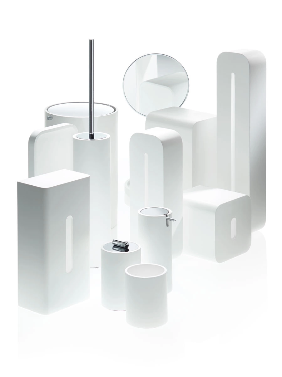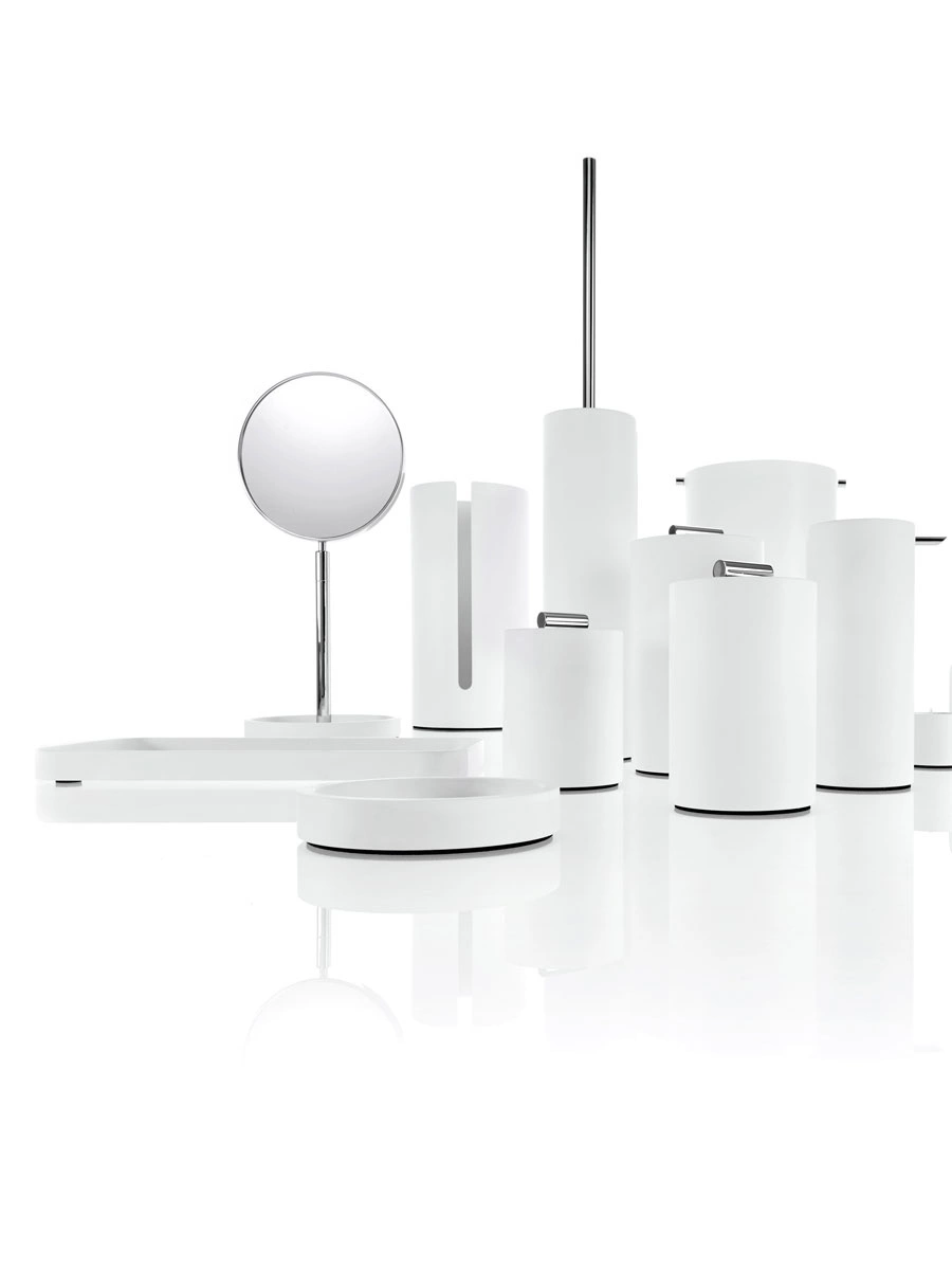 Kosz na śmieci z obrotową pokrywą Decor Walther STONE BEMD biały / stal polerowana