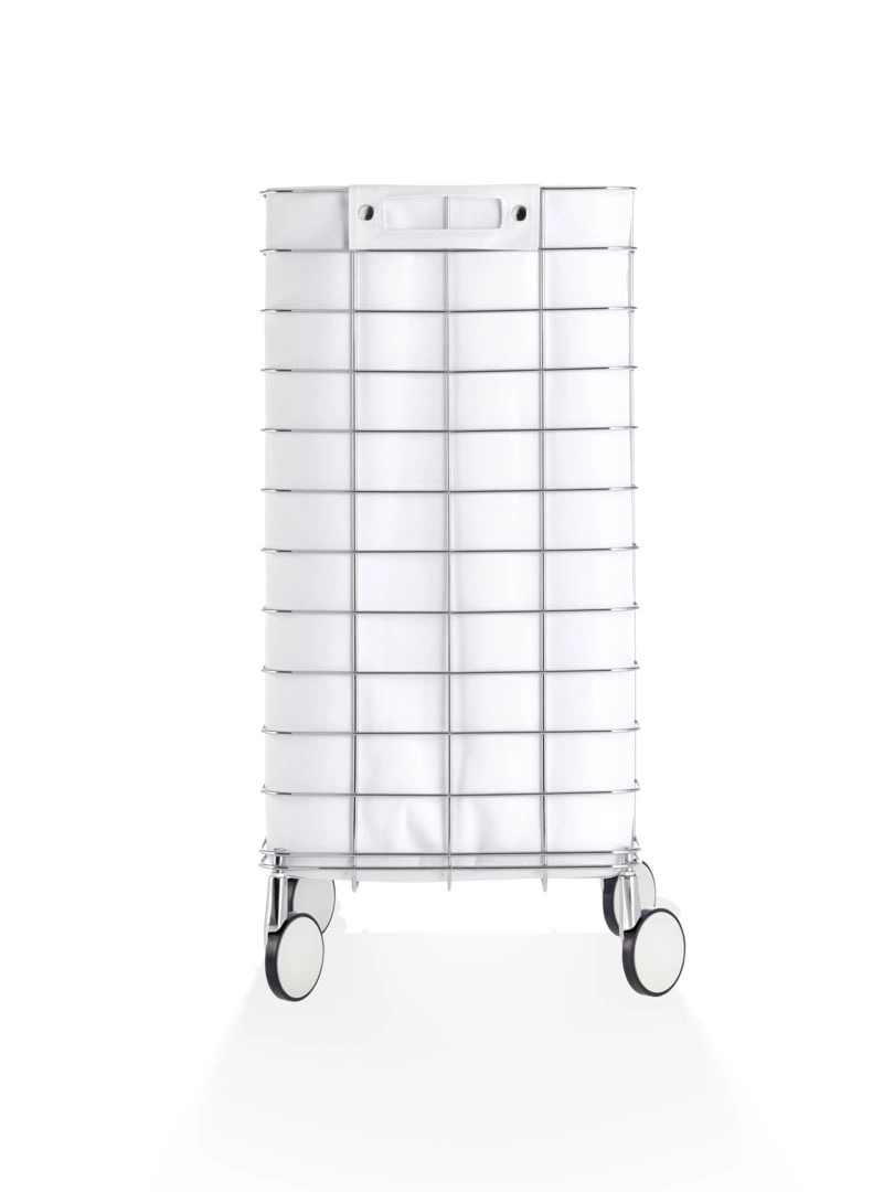 - Kosz na pranie na wygodnych, blokowanych kółkach WR 1 marki Decor Walther. Ażurowa konstrukcja ze stali nierdzewnej, chromowanej. Nylonowy wkład, który można prać w 30 st. C, wodoodporny. Kolor wkładu biały.