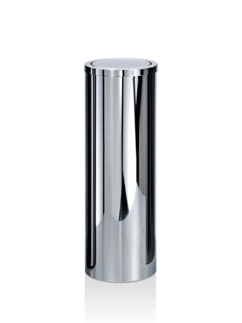 Smukły i wysoki kosz na papier lub na gościnne ręczniczki DW 1024 marki Decor Walther. Wygodna, ruchoma pokrywa. Wykonany z najwyższej jakości polerowanej stali nierdzewnej. Pojemność 22, 5 l.