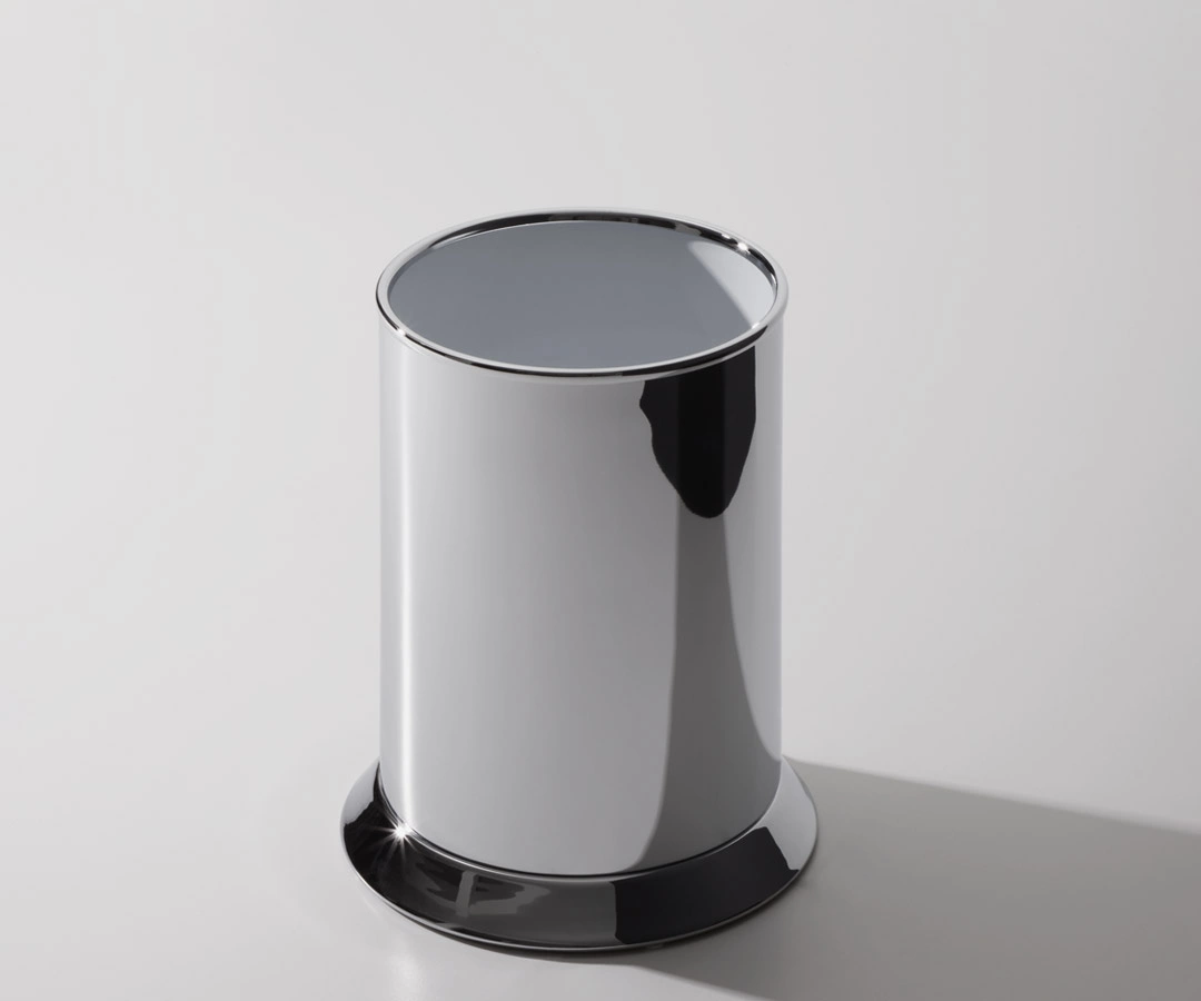 Luksusowy kosz na papier DW 35 marki Decor Walther. Wyposażony w wewnętrzny wkład. Wykonany z mosiądzu pokrytego chromem.