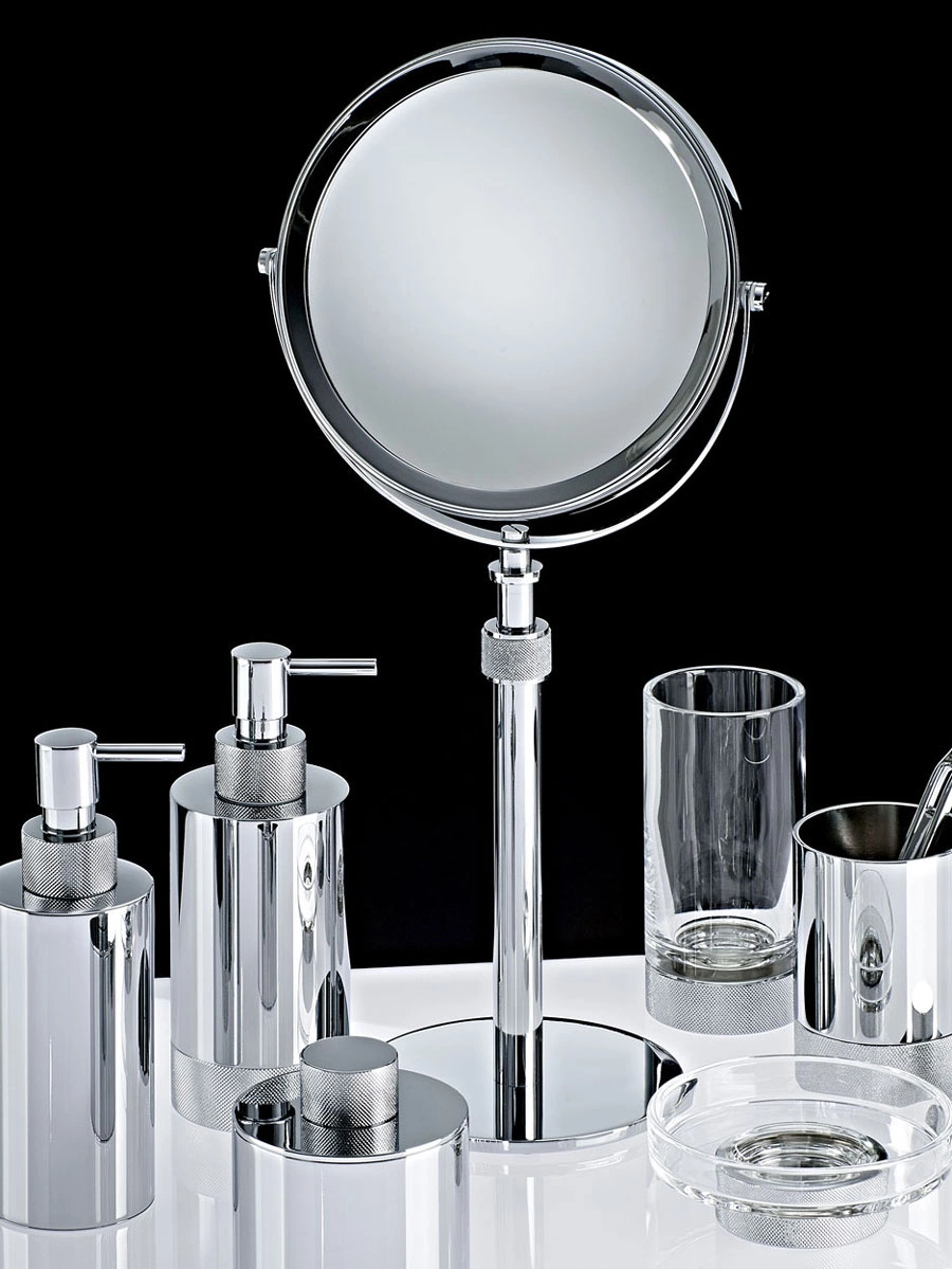 - Wolnostojąca mydelniczka CLUB STS marki Decor Walther z kolekcji Club. Okrągła forma, kryształ gładki, ozdobny pierścień wykonany z mosiądzu pokryty chromem.