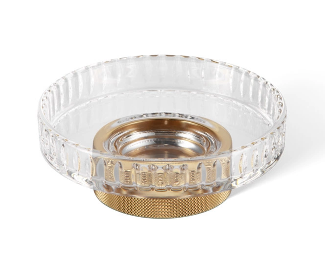 Wolnostojąca mydelniczka CLUB STS marki Decor Walther z kolekcji CLUB. Okrągła forma, kryształ szlifowany, ozdobny pierścień wykonany z mosiądzu pokryty 24 karatowym złotem.