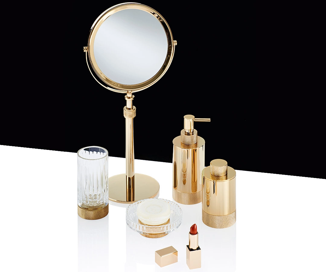 - Wolnostojąca mydelniczka CLUB STS marki Decor Walther z kolekcji CLUB. Okrągła forma, kryształ szlifowany, ozdobny pierścień wykonany z mosiądzu pokryty 24 karatowym złotem.