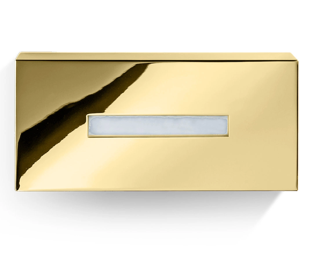 - Pudełko na chusteczki kosmetyczne KB 82 marki Decor Walther. Prostokątne, z możliwością zamontowania do ściany. Wykonane z mosiądzu pokrytego 24 karatowym złotem. Pasuje do kolekcji CENTURY.