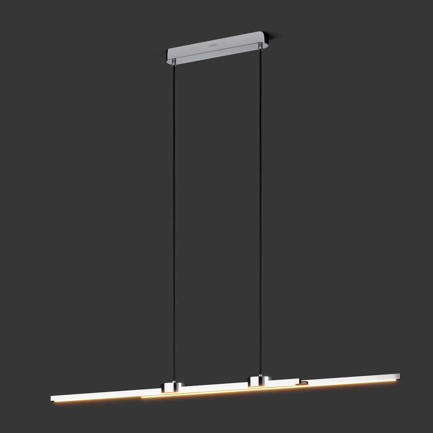 - Wisząca lampa z kolekcji Slim Lights marki JOOP!. Na metalowej, chromowanej, podłużnej podstawie. Wbudowane na stałe liniowe światło LED. Możliwość ściemniania ( bez ściemniacza w zestawie).