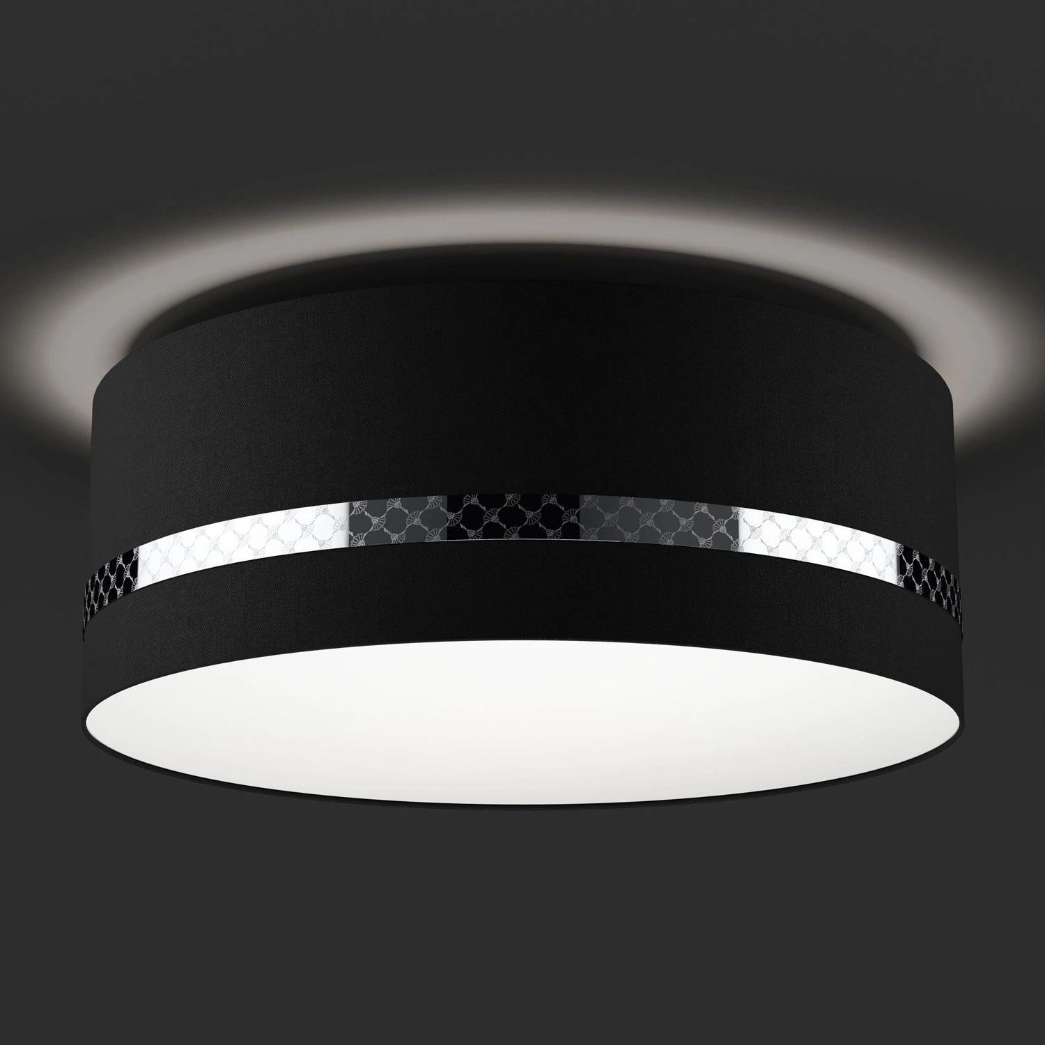 Luksusowa lampa sufitowa z kolekcji ROUND LIGHTS CHROME Black marki JOOP! Okrągła, materiał w kolorze czarnym z chromowaną opaską z delikatnym motywem cornflower.