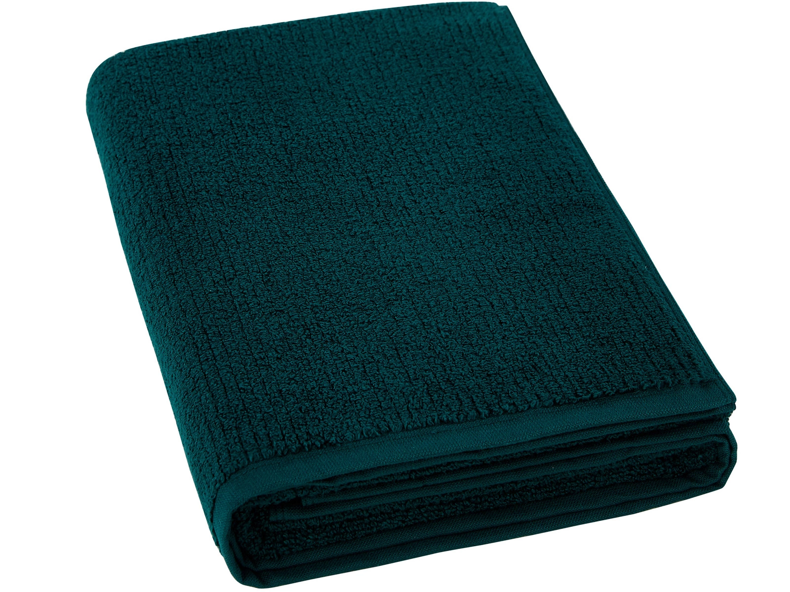 Prążkowany ręcznik z kolekcji Ribbed renomowanej marki Calvin Klein w kolorze butelkowej zieleni. Wykonany ze 100% bawełny, szybkoschnący. Wyjątkowo miękki i delikatny dla skóry. Wysoka gramatura (500 g/m2) oraz prążkowana struktura zapewnia wysoką absorpcję wilgoci.