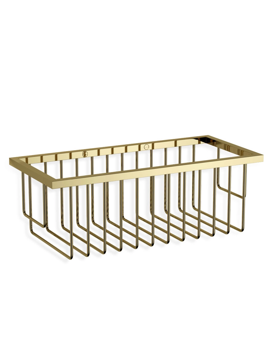 Koszyk pod prysznic WA WND1 marki Decor Walther. Montowany do ściany (widoczne śrubki montażowe). Wykony ze złoconego mosiądzu.