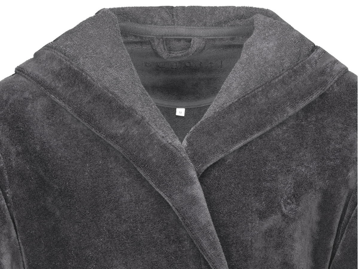 - Przytulny szlafrok męski z kapturem z kolekcji Roberto marki bugatti. Kolor grafitowy. Bardzo miękka mikrofibra wykonana z bawełny i poliestru. Wyposażony w dwie kieszenie. Regulacja wysokości paska.