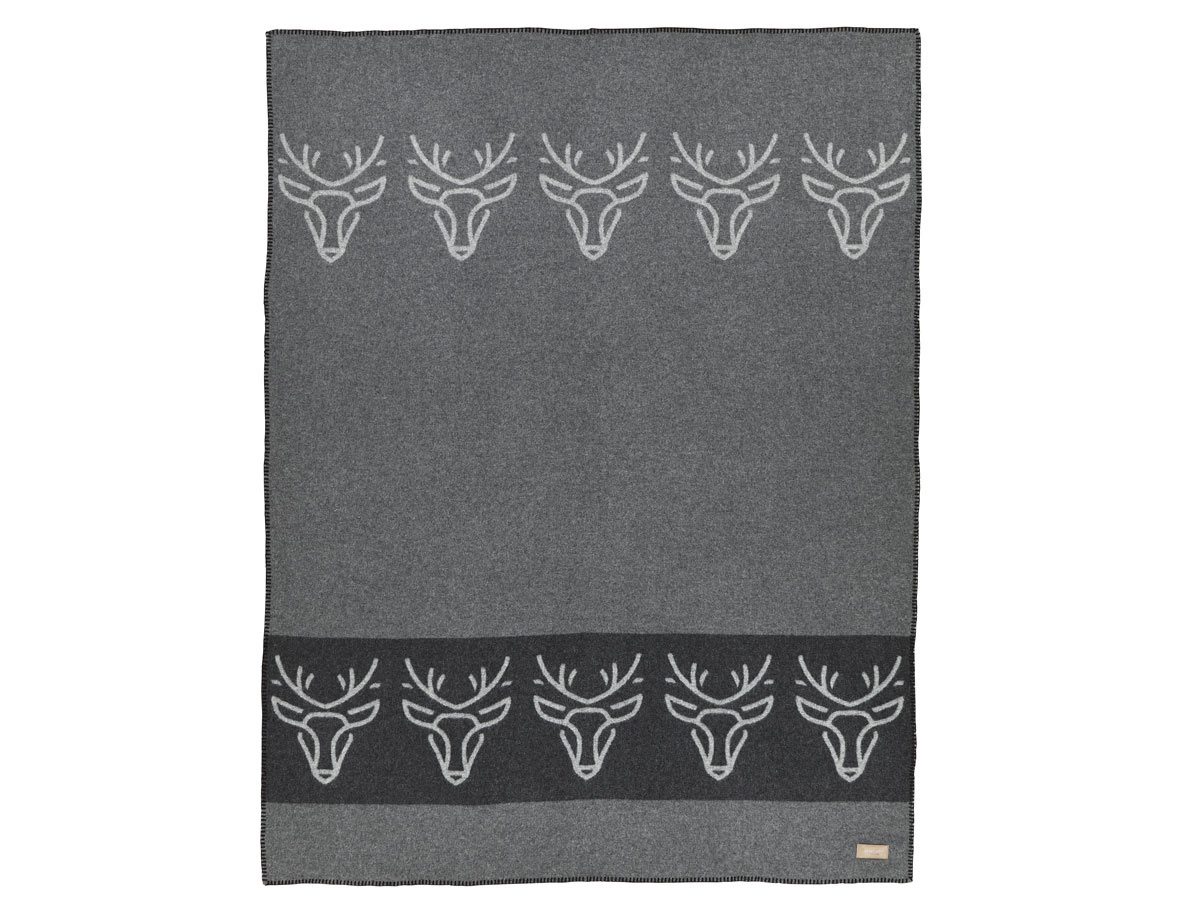 - Koc wełniany z zimowym motywem jelenia - Zernez od marki Eskimo. Wykonany z mieszanki miękkiej wełny merino z poliamidem. Kolorze szary. Ozdobiony kontrastującym ściegiem dzierganym.