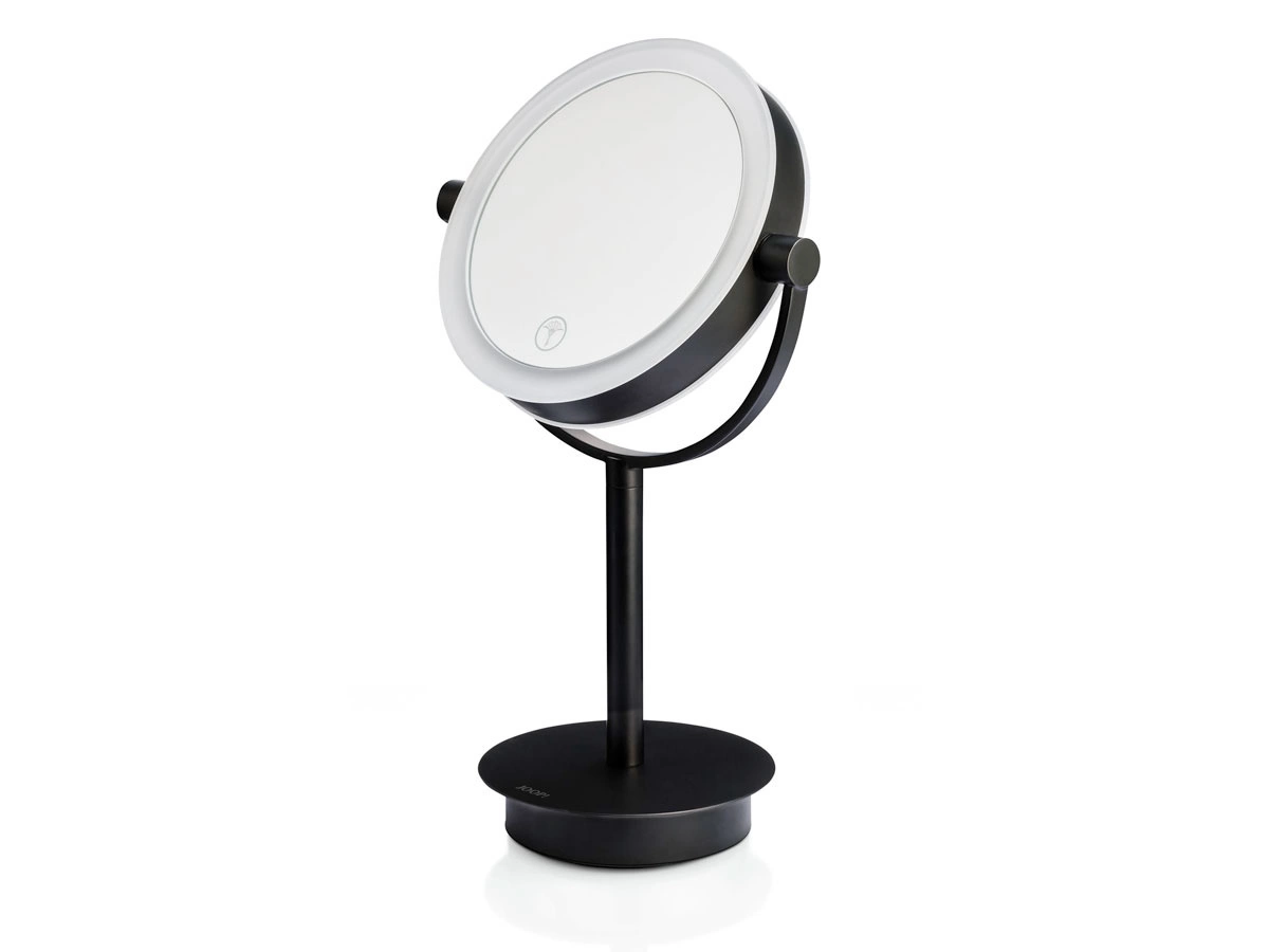 - Lusterko kosmetyczne na nóżce, model Chromeline Black. Dwustronne, obracane 360 stopni. Opcja powiększenie X1 oraz X5. Wyposażone w oświetlenie LED. Funkcja włączania Touch-one. Możliwość ustawienia barwy światła. Zasilane na baterie.
