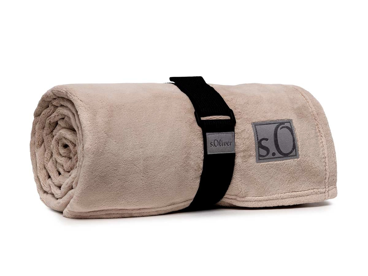 Praktyczny pasek dołączony do koca ułatwia jego przechowywanie i przenoszenie – sprawdzi się zarówno w domowym zaciszu, jak i w podróży. U dołu koca znajduje się subtelne, wyszywane logo marki s.Oliver, które dodaje całości eleganckiego, wykończonego charakteru.