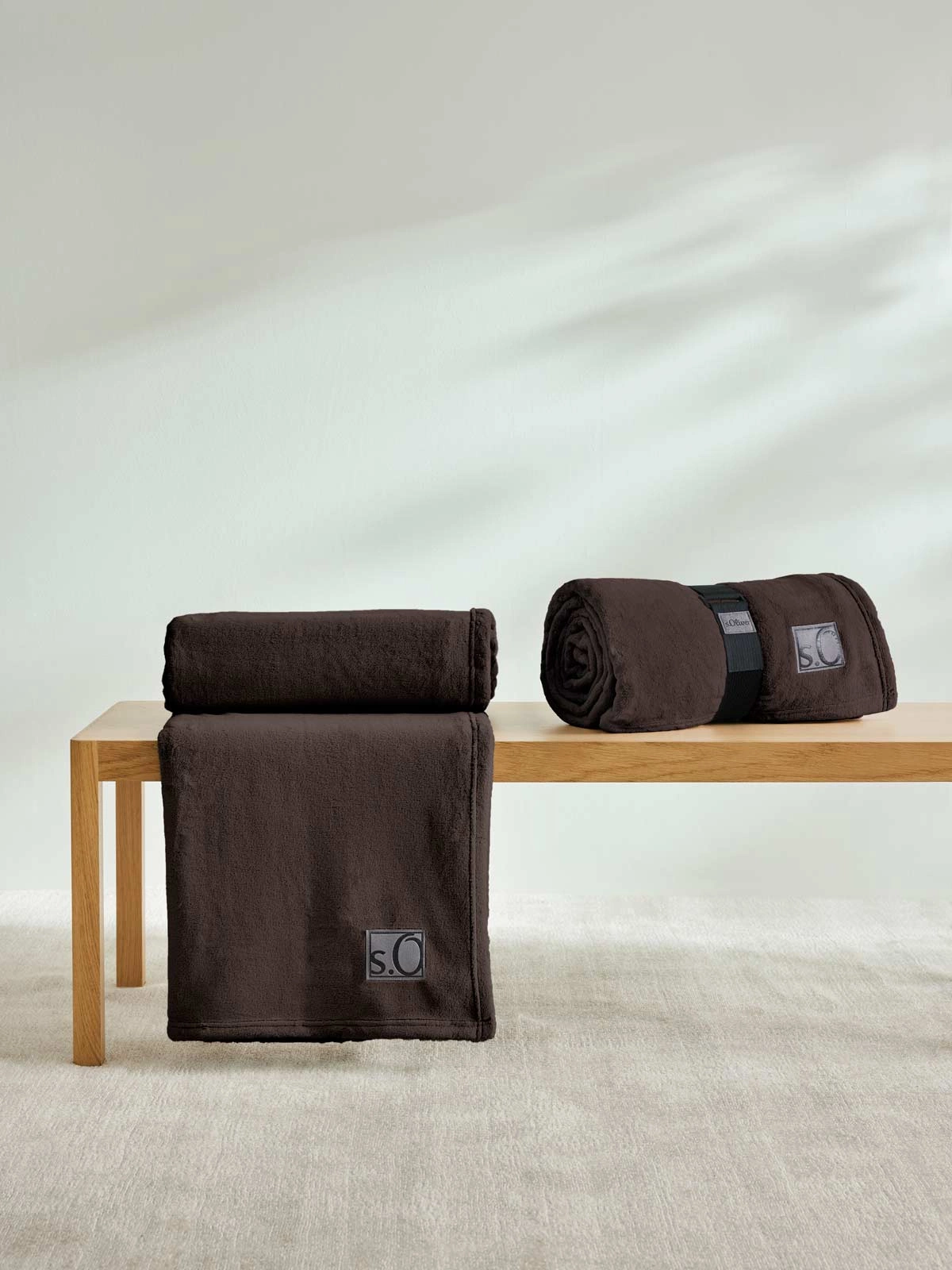 Praktyczny pasek dołączony do koca ułatwia jego przechowywanie i przenoszenie – sprawdzi się zarówno w domowym zaciszu, jak i w podróży. U dołu koca znajduje się subtelne, wyszywane logo marki s.Oliver, które dodaje całości eleganckiego, wykończonego charakteru.