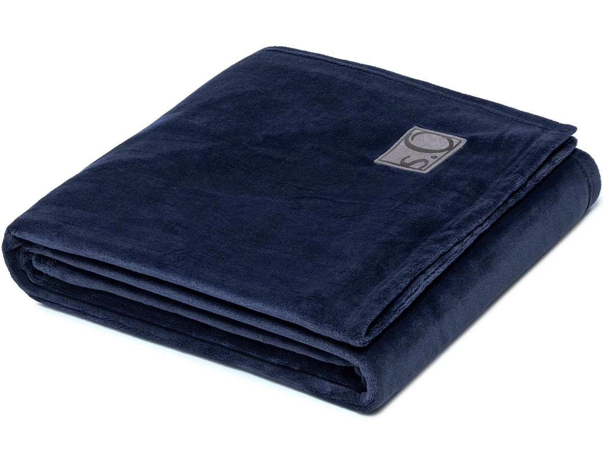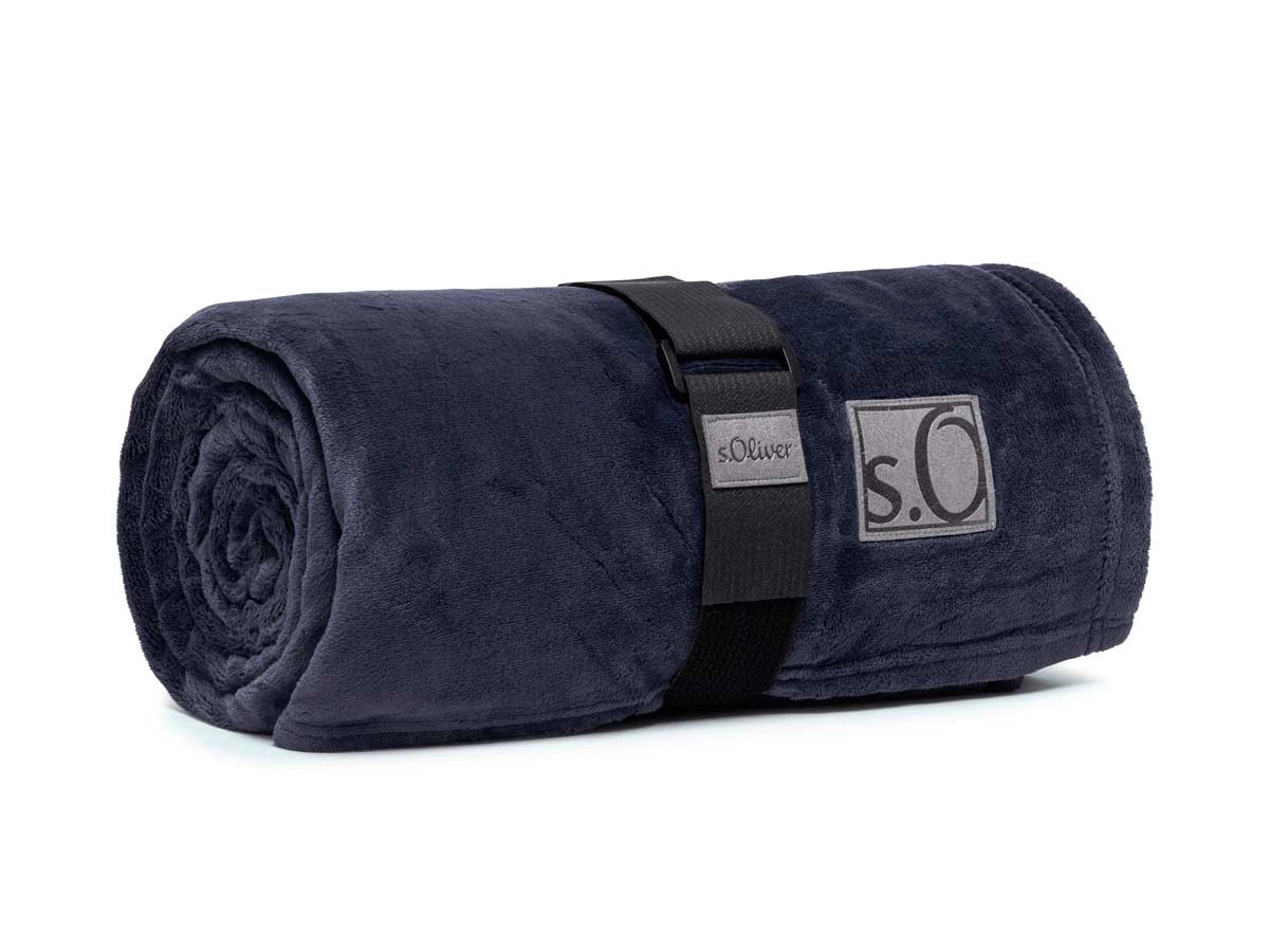 - Miękki, jednobarwny koc Kuschelsoft 3638-660 marki S.Oliver. Kolor granatowy. Wyposażony w pasek dla łatwego przechowywania i przenoszenia. Logo marki u dołu. Wykonany w 100% z supermiekkiego i trwałego włókna poliestrowego.