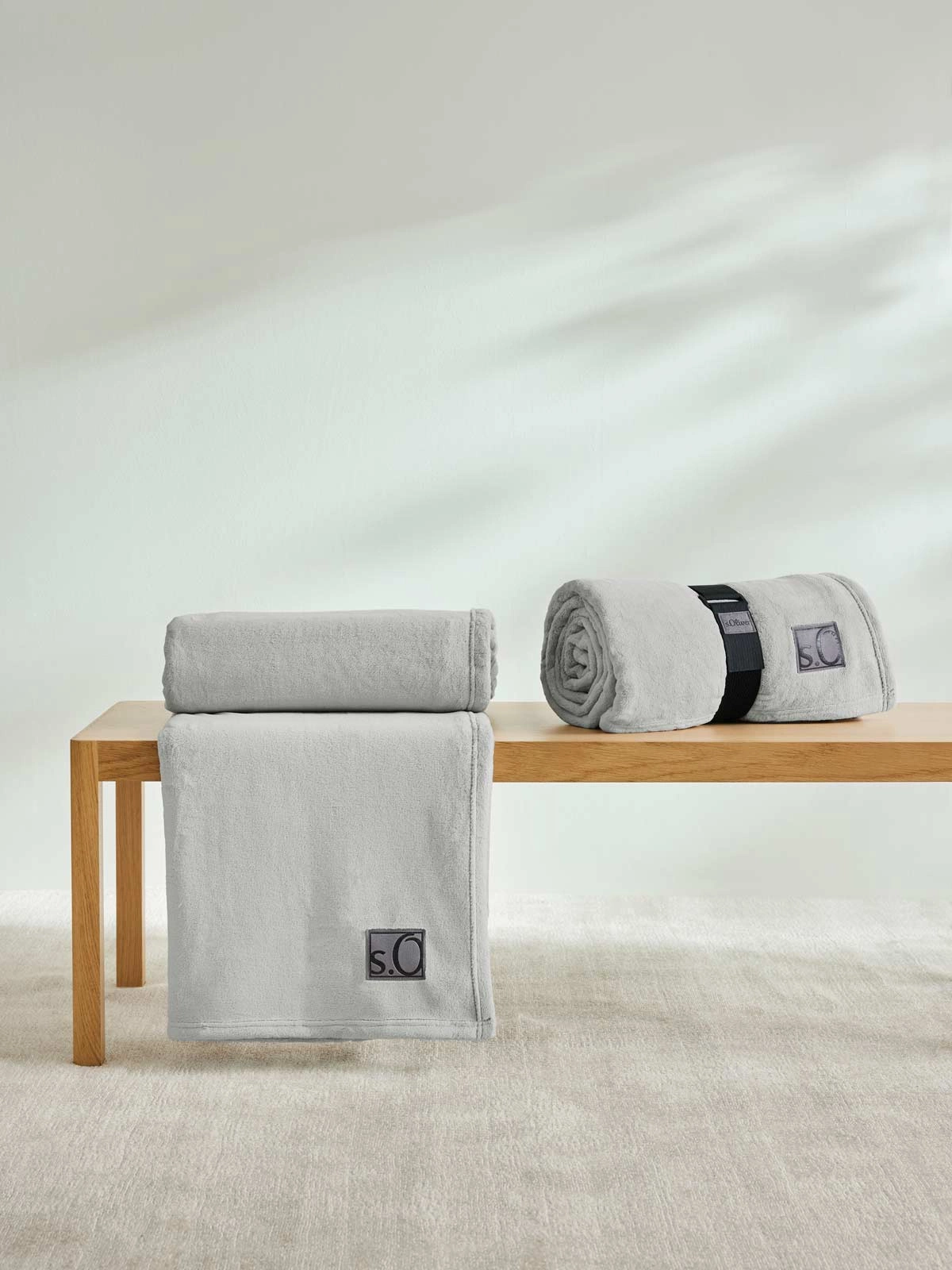 Praktyczny pasek dołączony do koca ułatwia jego przechowywanie i przenoszenie – sprawdzi się zarówno w domowym zaciszu, jak i w podróży. U dołu koca znajduje się subtelne, wyszywane logo marki s.Oliver, które dodaje całości eleganckiego, wykończonego charakteru.