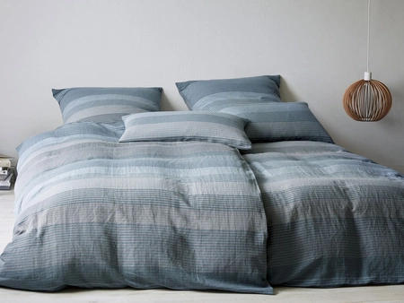 - Casualowa pościel Fjord 7094-9 niemieckiej marki elegante. Różnorodne paski w odcieniach koloru szarego i niebieskiego. Pościel wykonana z mieszanki bawełny i lnu. Można ją prasować lub nie, dzięki czemu nabierze wyjątkowego charakteru.