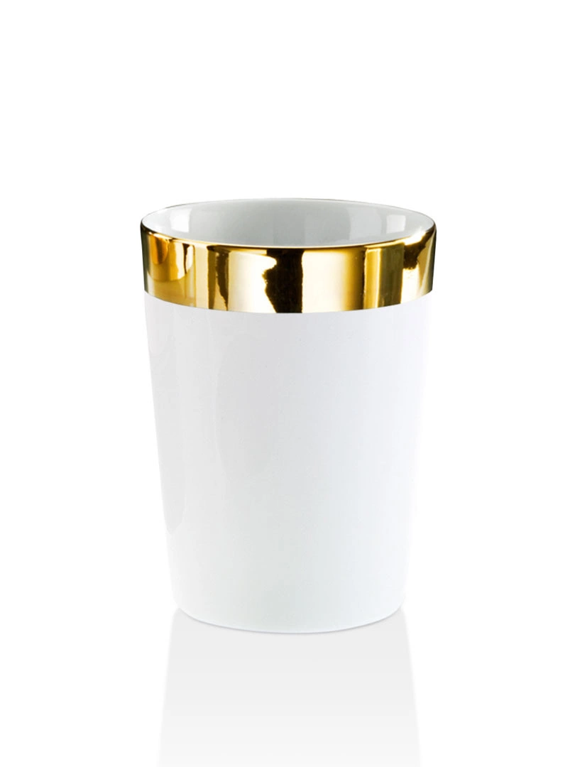 Kubek łazienkowy BE 50 marki Decor Walther. Wykonany z wysokiej jakości porcelany z ozdobnym pozłacanym dekorem.