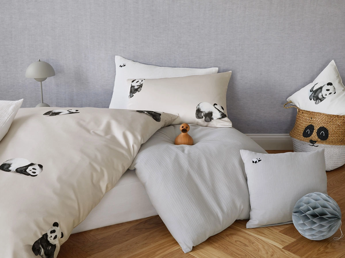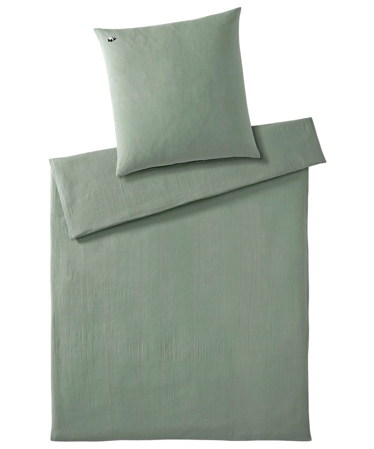 - Pościel dla dzieci wykonana z muślinu, Smooth 9003-4 niemieckiej marki elegante. Jednobarwna, w kolorze zielonym. Poduszka z haftowaną pandą. Tkanina muślinowa wykona z najwyższej jakości bawełny, o lekkim lekko pomarszczonym splocie płóciennym.
