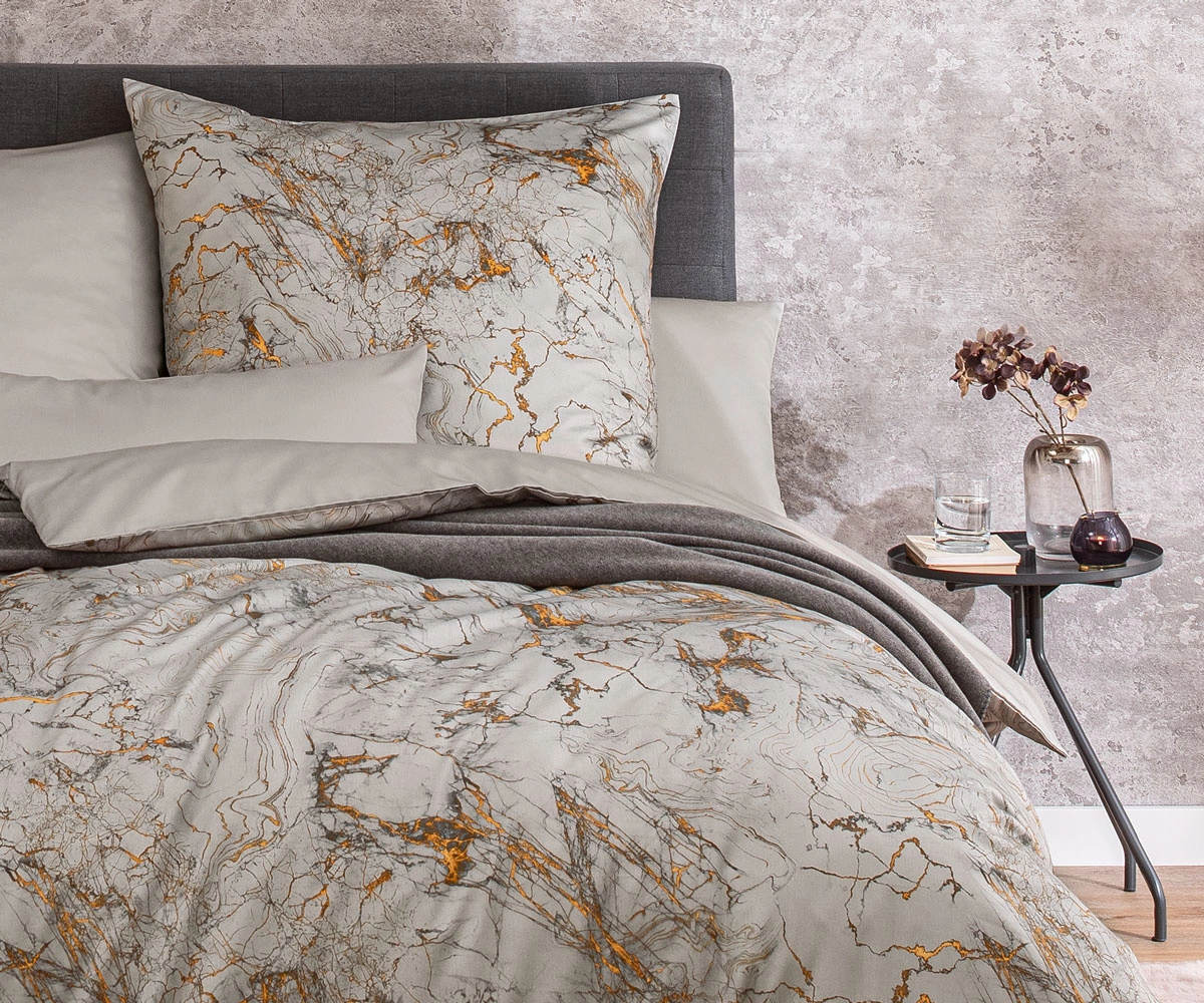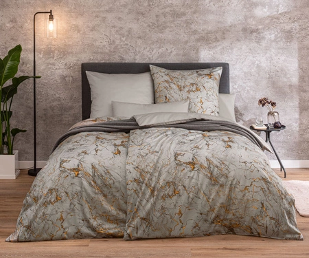 • Pościel Raphael 7259-820 marki Estella. Dwustronna, z jednej strony wzór strukturze marmuru, z drugiej gładka, szara.  Najwyższej jakości druk cyfrowy. Pościel satynowa Estella wyprodukowana jest w 100% z czystej, czesanej mako-bawełny.