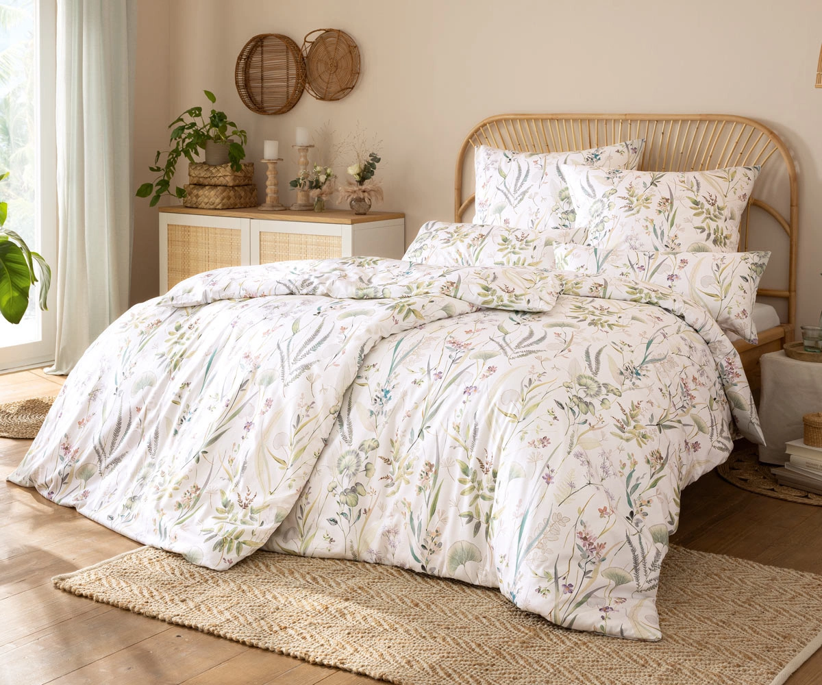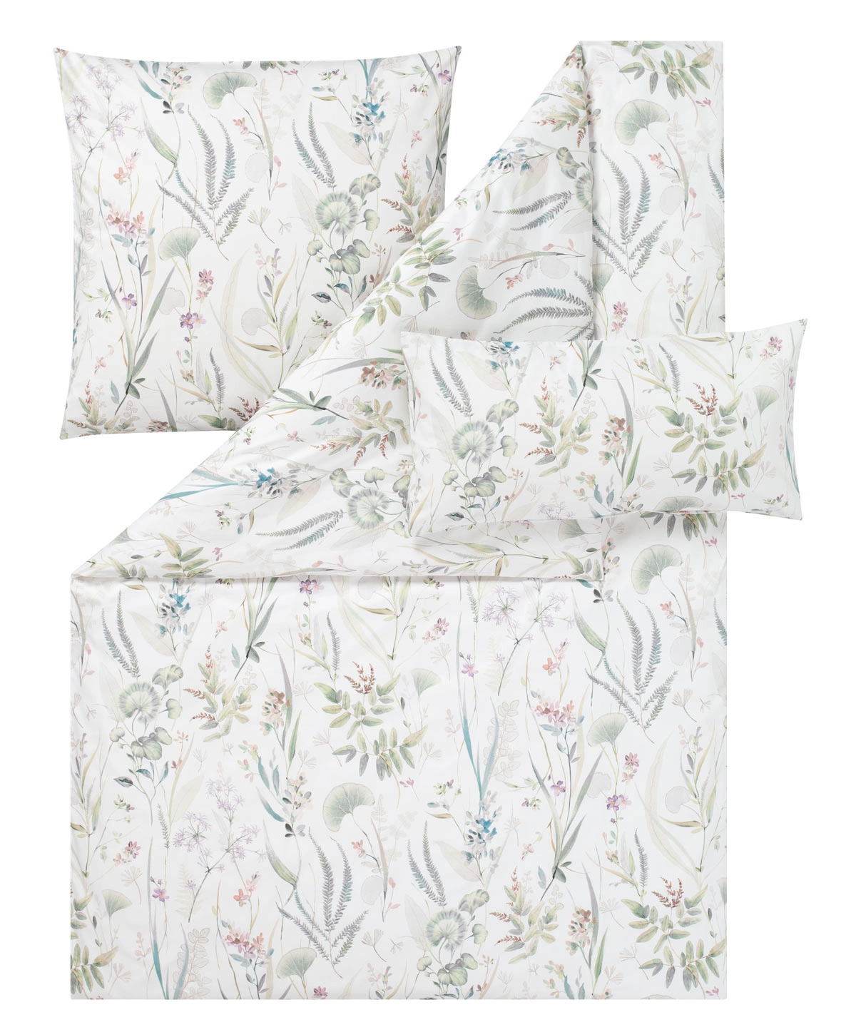 - Pościel Riekie 7939-520 od marki Estella. Kwiaty i rośliny utrzymane w zielonej kolorystyce na białym tle. Wyprodukowana jest w 100% z czystej, czesanej mako-bawełny. Satyna z firmy Estella jest niezwykle przyjemna i przyjazna dla skóry.