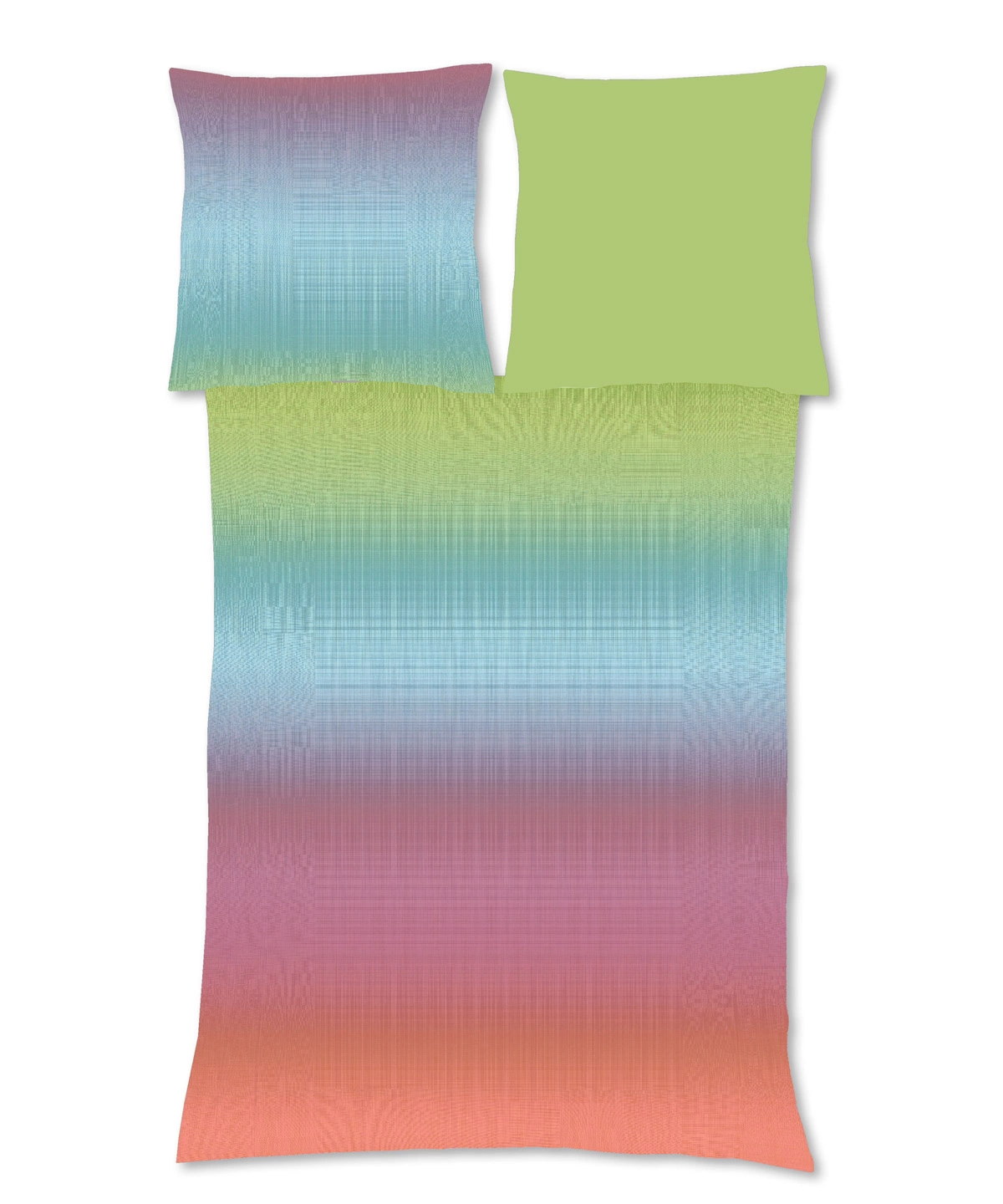 - Pościel TENCEL™, wzór w przechodzące odcienie w kolorach tęczy. Model 554452 marki Fleuresse. Wykonana z rewolucyjnego materiału TENCEL™, który jak żaden inny reguluje wilgotność i ciepło naszego ciała każdej nocy. Zapinana na zamek.