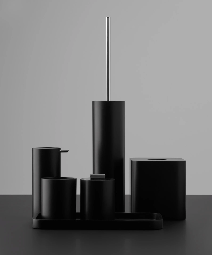 - Szczotka WC wolnostojąca z kolekcji STONE marki Decor Walther. Uchwyt szczotki z pokrywą do pojemnika wykonane ze stali nierdzewnej w wykończeniu matowym. Pojemnik na szczotkę wykonany z czarnego kompozytu mineralnego.