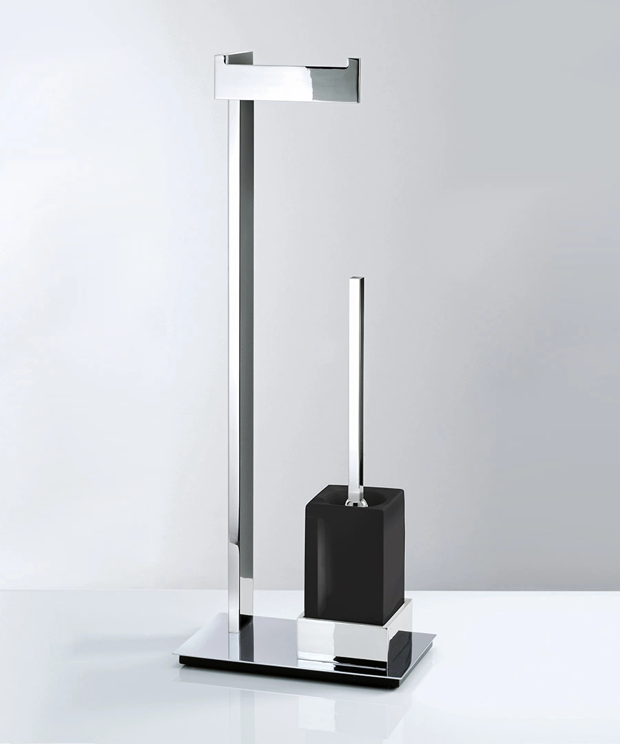 - Stojak na papier toaletowy i szczotkę BRICK BK SBK marki Decor Walther. Podstawa i uchwyt na papier o prostokątnych kształtach wykonane z mosiądzu pokrytego chromem. Pojemnik na szczotkę prostokątny z czarnej porcelany na metalowej podstawce.