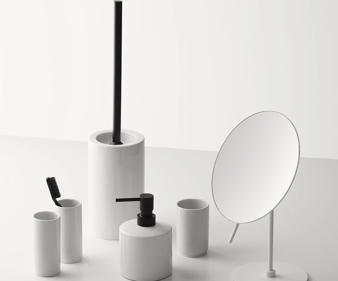 • Wolnostojąca szczotka do WC DW 6100 marki Decor Walther. Wykonana z białej porcelany z cylindrycznym, odkrytym pojemnikiem. Uchwyt lakierowany na czarny mat.