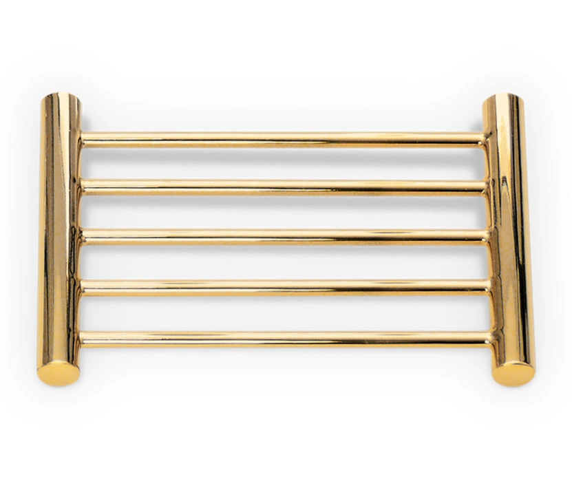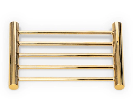 • Mydelniczka w formie podstawki na mydło DW 990 marki Decor Walther. Wolnostojąca, prostokątna w formie rusztu. Zaokrąglone nóżki. Wykonana ze stali nierdzewnej PVD pokrytej złotem. Dzięki swojej konstrukcji mydło nie ma bezpośredniego kontaktu z wodą.