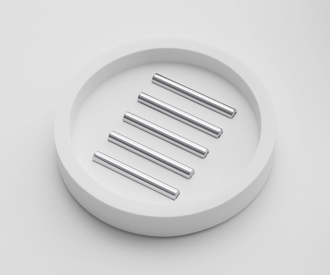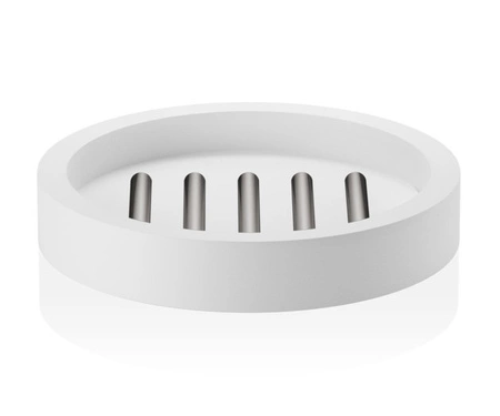 - Wolnostojąca mydelniczka z kolekcji STONE STS marki Decor Walther. Okrągła, elegancka wykonana z białego kompozytu z ociekaczem wykonanym ze stali nierdzewnej w matowym wykończeniu.