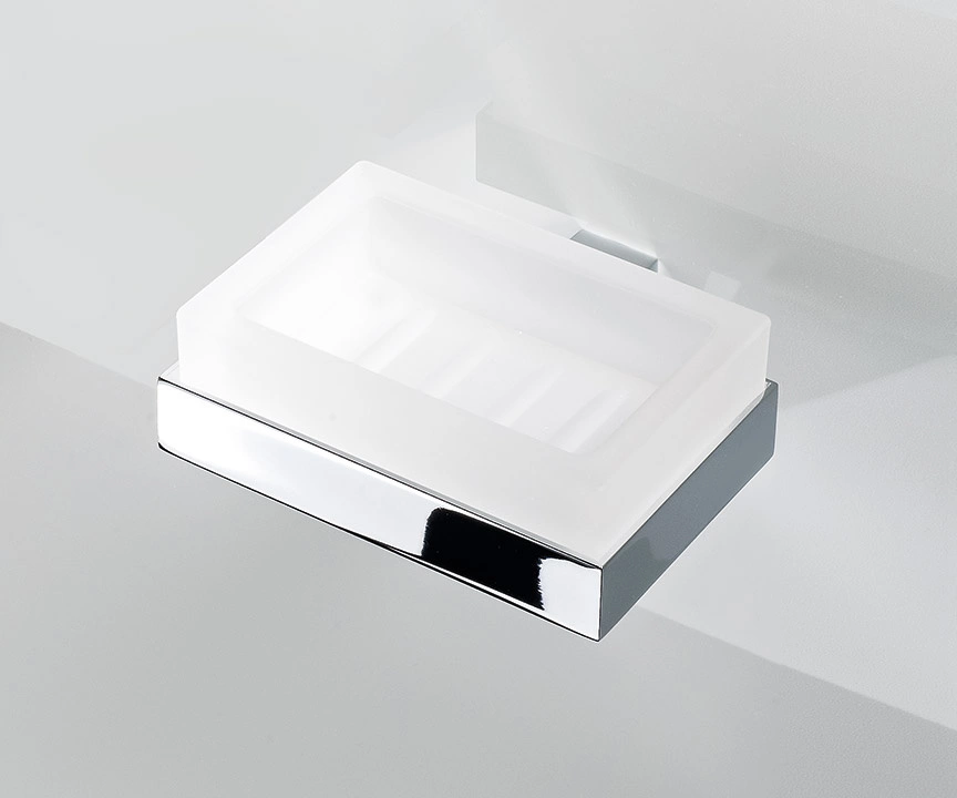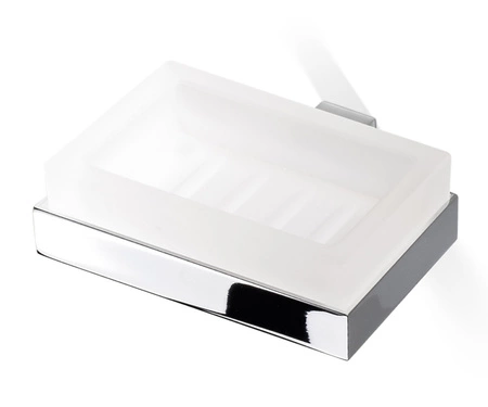 - Mydelniczka naścienna CO WSS marki Decor Walther z kolekcji CORNER. Solidna, prostokątna wykonana z białego matowego szkła, osadzona w podstawie wykonanej z mosiądzu pokrytego chromem.