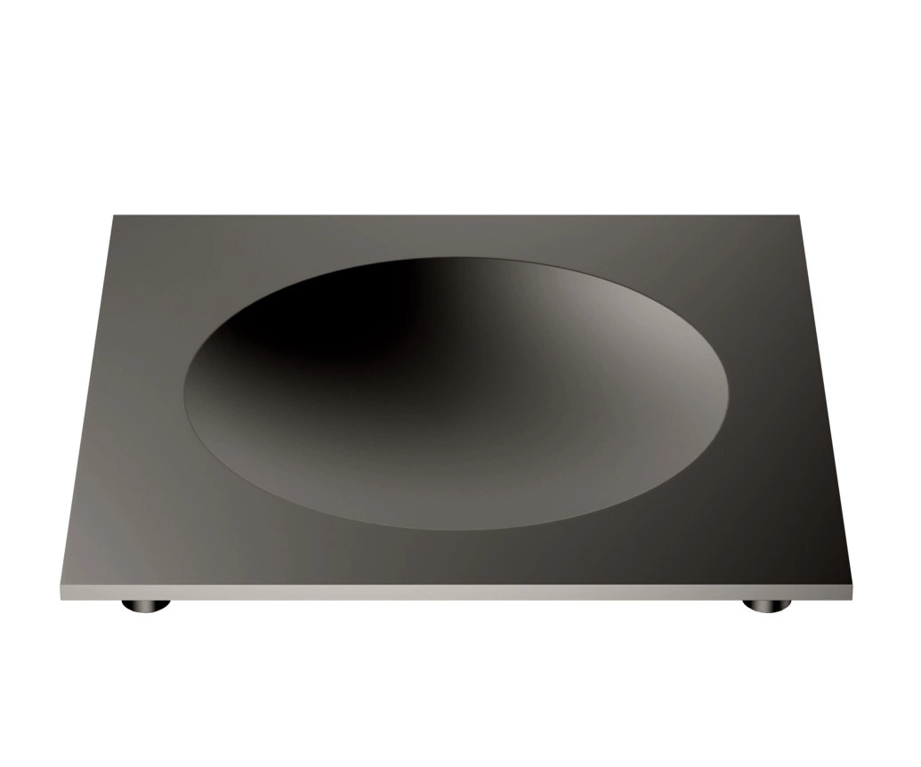 Kwadratowa mydelniczka do łazienki DW 351 marki Decor Walther z kolekcji CORNER. Minimalistyczna forma na niziutkich nóżkach. Wykonana z mosiądzu w kolorze ciemnego metalu.