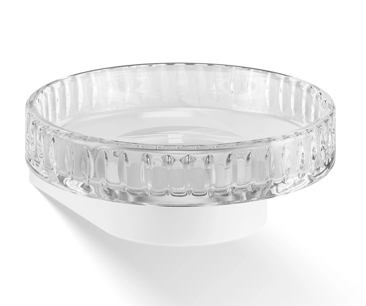 - Mydelniczka ścienna CENTURY WSS marki Decor Walther. Klasyczny okrągły kształt. Wykonana z szlifowanego szkła kryształowego, osadzona na podstawie zrobionej z mosiądzu w kolorze białym.