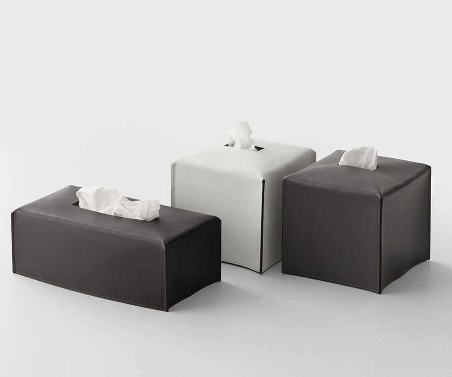 • Pudełko na chusteczki kosmetyczne w formie nakładki NAPPA KBQ marki Decor Walther. Sześcienne, z eleganckimi przeszyciami wykonane z naturalnej skóry w czarny kolorze.