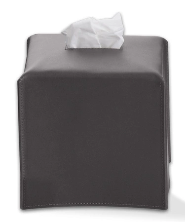 - Pudełko na chusteczki kosmetyczne w formie nakładki NAPPA KBQ marki Decor Walther. Sześcienne, z eleganckimi przeszyciami wykonane z naturalnej skóry w szarym kolorze.