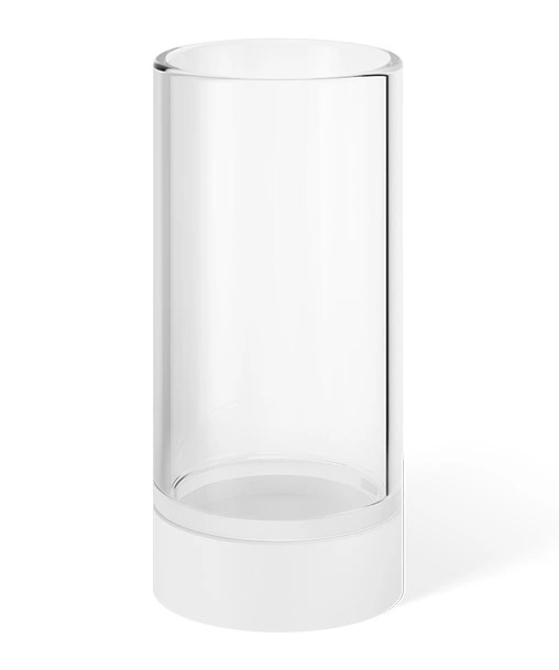 Kubek łazienkowy wolnostojący CENTURY SMG marki Decor Walther. Wykonany z gładkiego szkła kryształowego, podstawa zrobiona z mosiądzu lakierowana na biało. Pasuje do kolekcji BAR i ROUND.