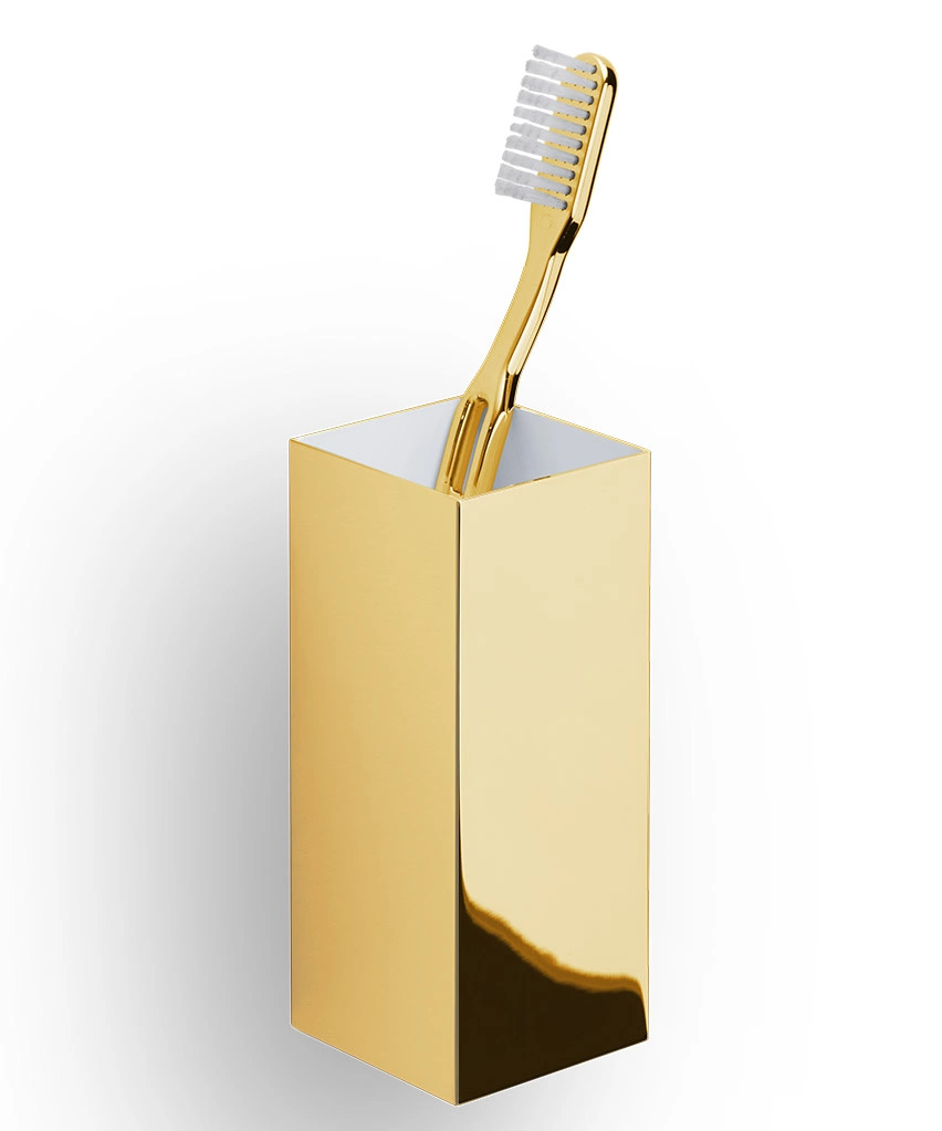 - Kubek łazienkowy naścienny CO WMB marki Decor Walther. Prosty kształt, wykonany z mosiądzu pokrytego 24 karatowym złotem.