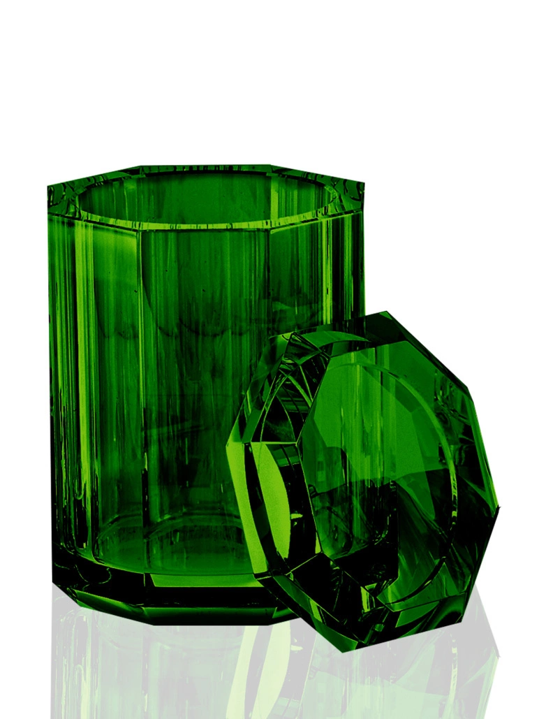 • Elegancki pojemnik łazienkowy z przykrywką KR BMD marki Decor Walther.Wykonane z masywnego zielonego szkła kryształowego, o charakterystycznym dla kolekcji, geometrycznym kształcie. Idealny do przechowywania wacików, patyczków łazienkowych.