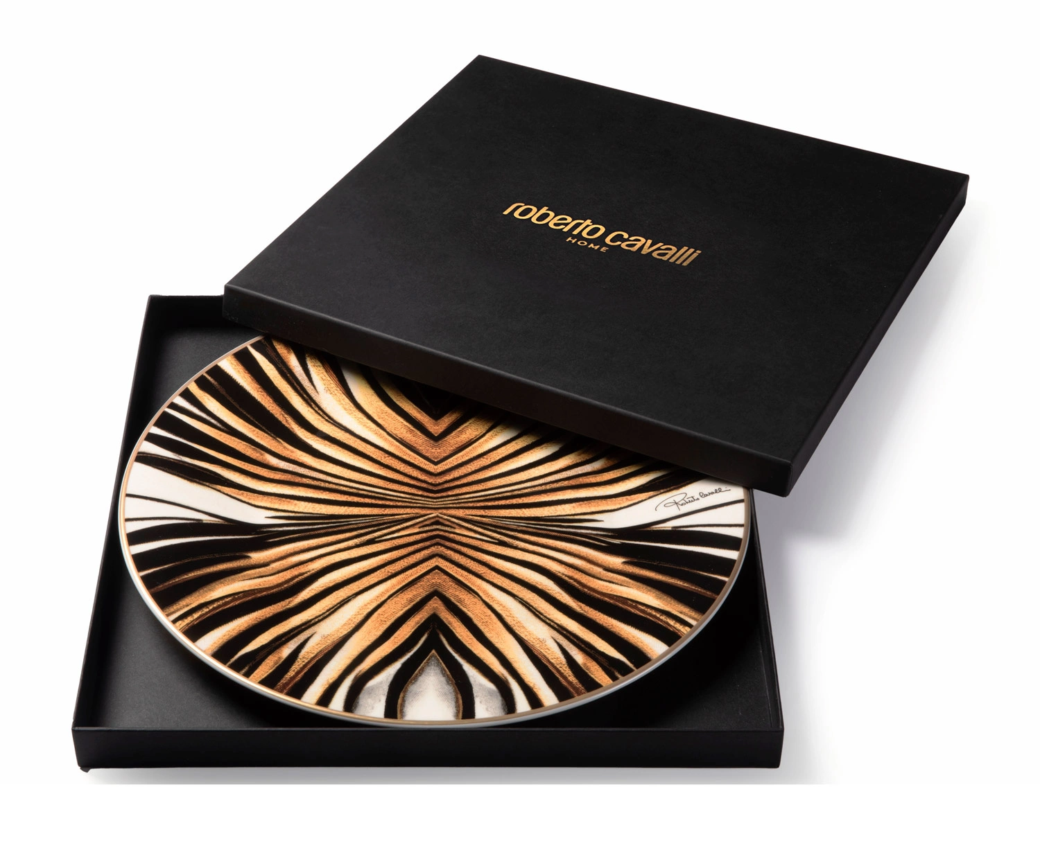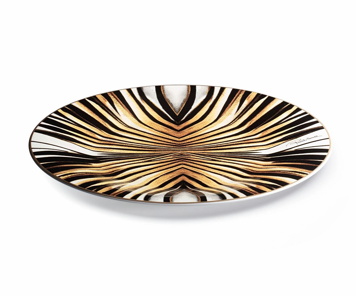 • Podtalerz Ray of Gold marki Roberto Cavalli. Kolekcja zainspirowana światłem i słońcem zamienionymi w wyrafinowany graficzny wzór. Wykonany z porcelany kostnej. Z ręcznie malowanymi złoceniami. Możliwość mycia w zmywarce.