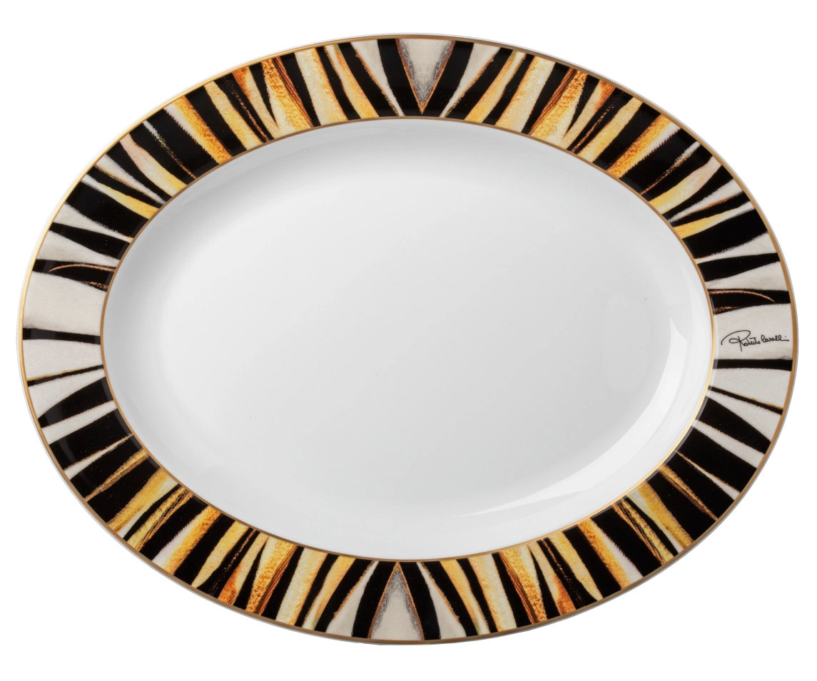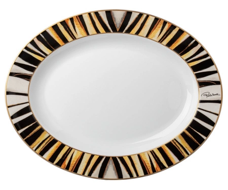 - Półmisek 36 cm Ray of Gold marki Roberto Cavalli. Kolekcja zainspirowana światłem i słońcem zamienionymi w wyrafinowany graficzny wzór. Wykonana z porcelany kostnej. Z ręcznie malowanymi złoceniami. Możliwość mycia w zmywarce.