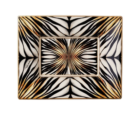 - Półmisek prostokątny Ray of Gold marki Roberto Cavalli. Kolekcja zainspirowana światłem i słońcem zamienionymi w wyrafinowany graficzny wzór. Wykonany z porcelany kostnej. Możlwiość mycia w zmywarce.