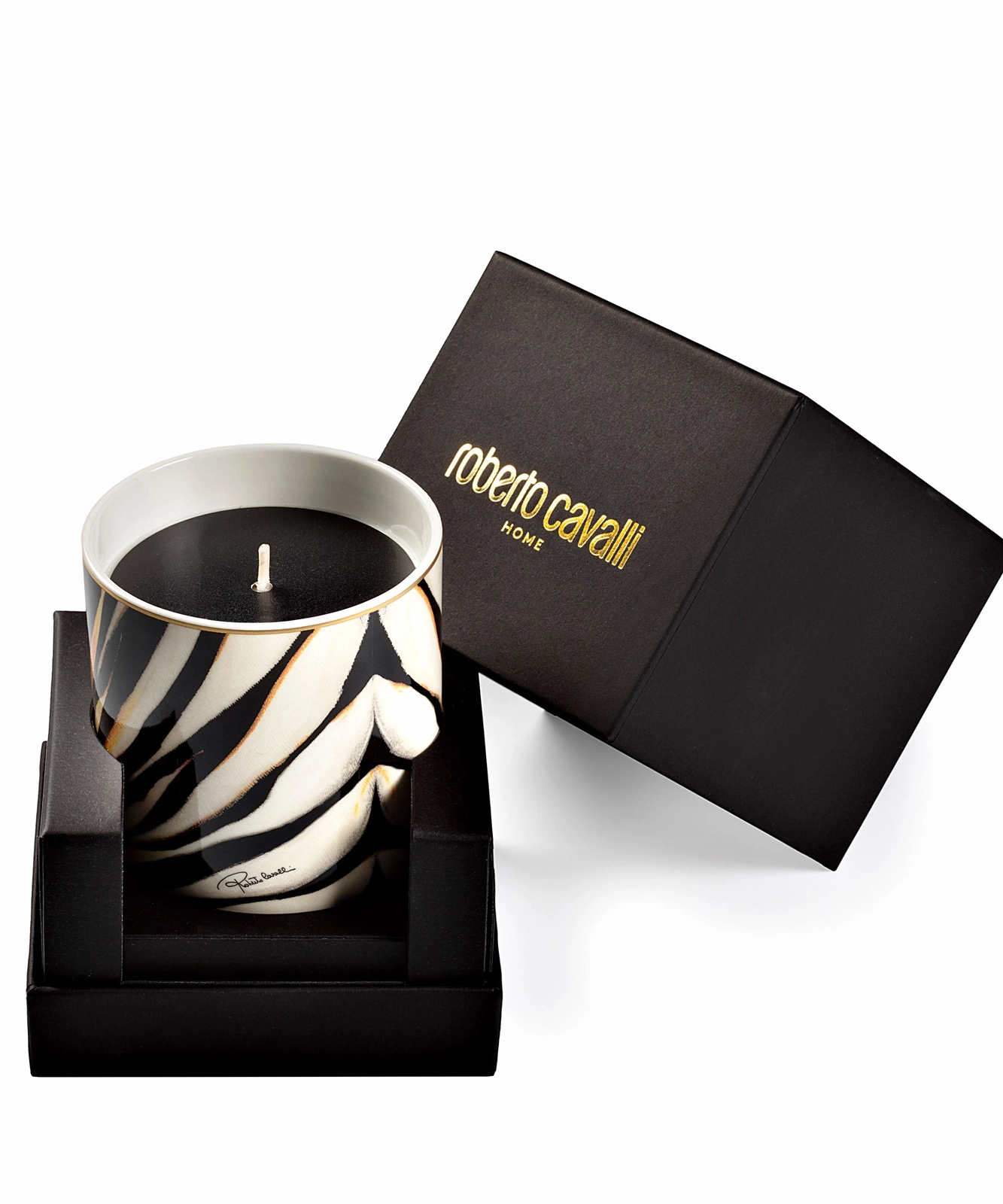 • Zapachowa świeca Ray of Gold marki Roberto Cavalli. Wosk umieszczony w luksusowym pojemniku z porcelany kostnej. Zapakowana w eleganckie pudełko prezentowe.