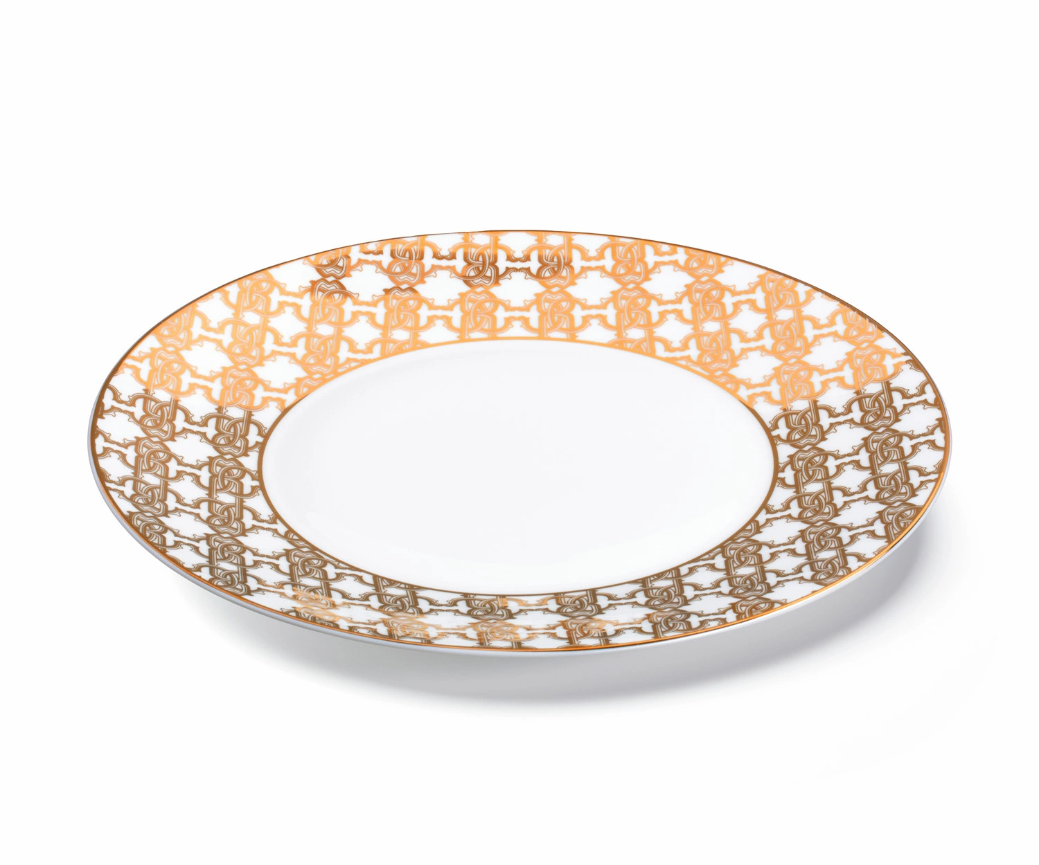 - Talerz obiadowy Monogram od marki Roberto Cavalli. Zestaw 2 sztuk. Najbogatszy wzór ofercie projektanta. Biała porcelana kostna z powtórzonym monogramem w korze złotym. Brzeg ręcznie malowany złotem.