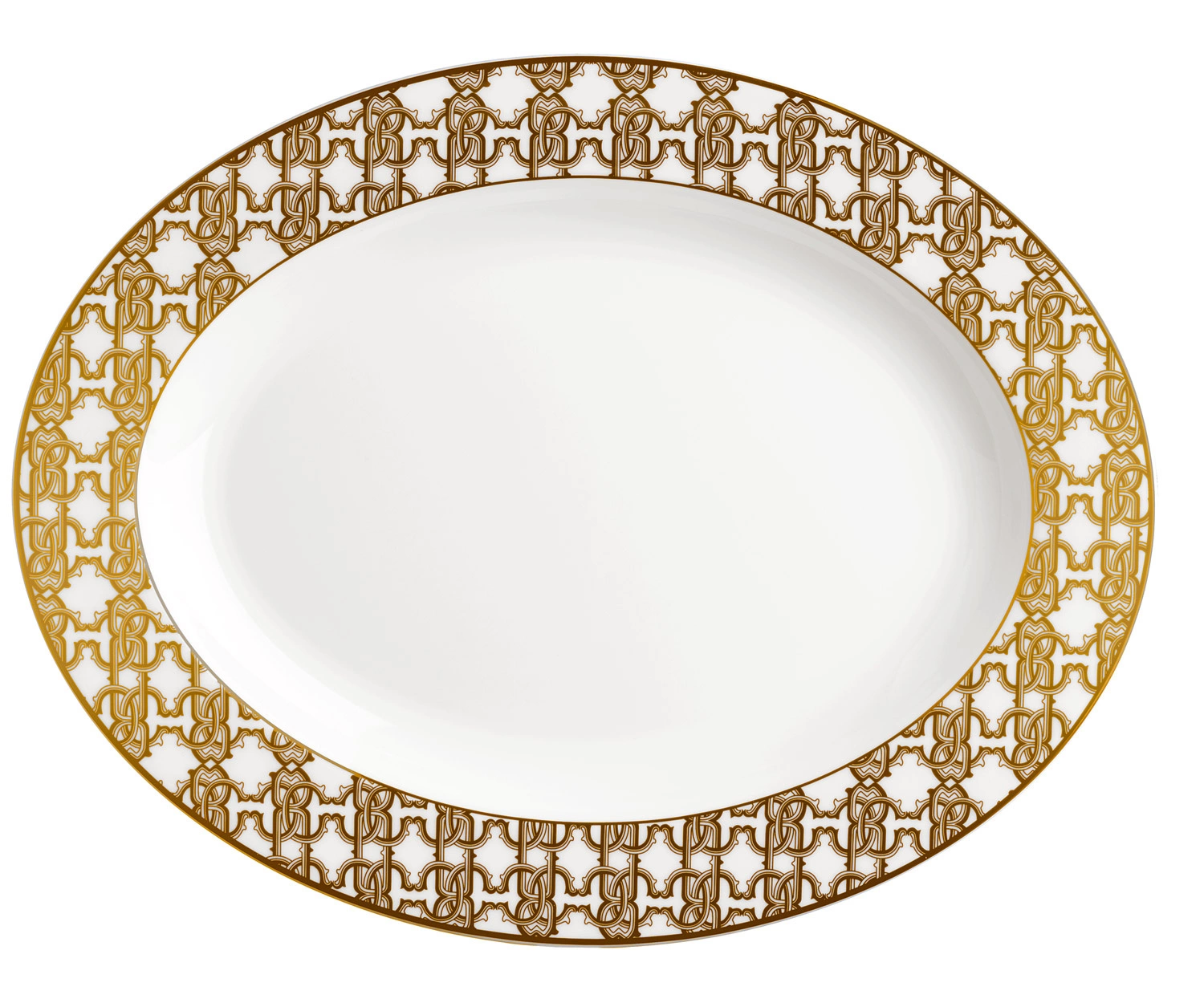 - Półmisek 36 cm Monogram od marki Roberto Cavalli. Najbogatszy wzór ofercie projektanta. Biała porcelana kostna z powtórzonym monogramem w korze złotym. Brzeg ręcznie malowany złotem.