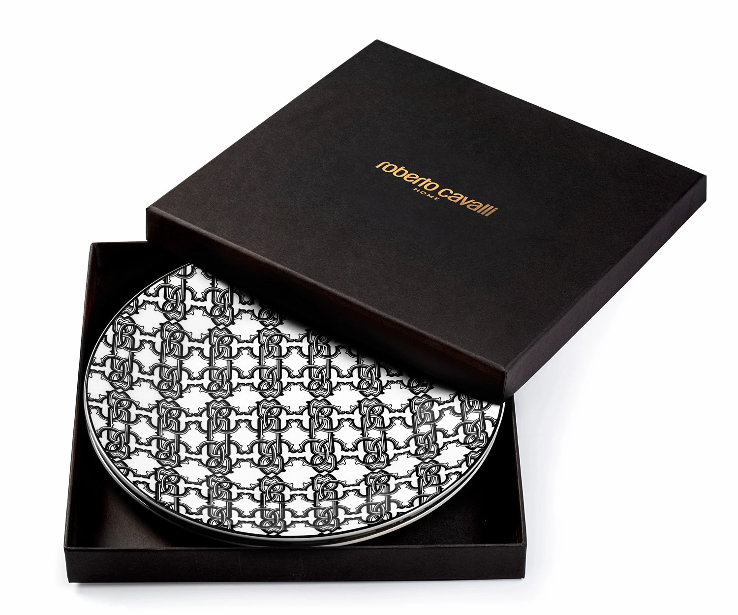 Talerz deserowy Roberto Cavalli Monogram Black, zestaw 2 szt.