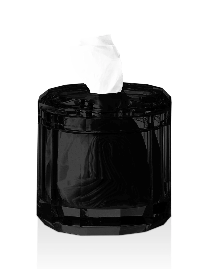 - Pudełko na chusteczki KR KB marki Decor Walther. Wykonane z masywnego szkła kryształowego w kolorze antracytowym, o charakterystycznym dla kolekcji, geometrycznym kształcie.