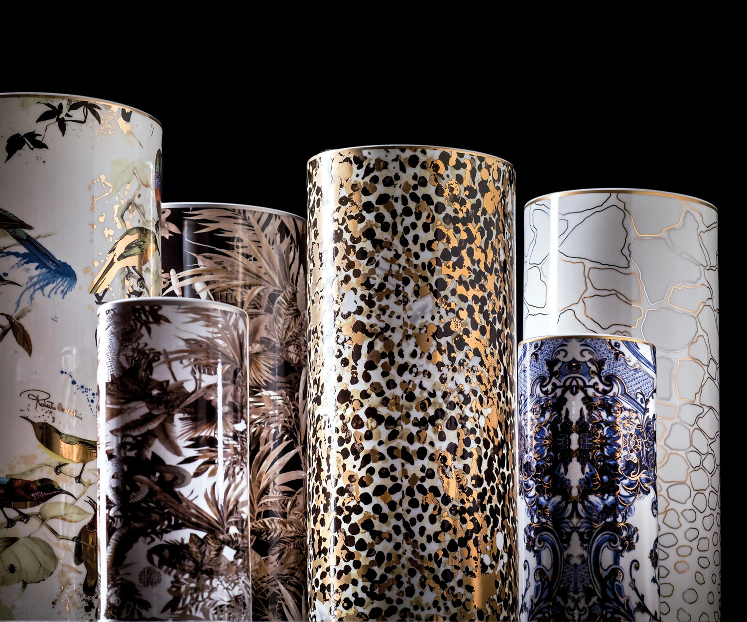 - Duży wazon na kwiaty Azulejos od marki Roberto Cavalli. Wykonany z porcelany kostnej. Wzór inspirowany kolekcją modową projektanta, która odniosła ogromny sukces. Kontrastowe ornamenty na białej porcelanie z ręcznie malowanymi złoceniami.