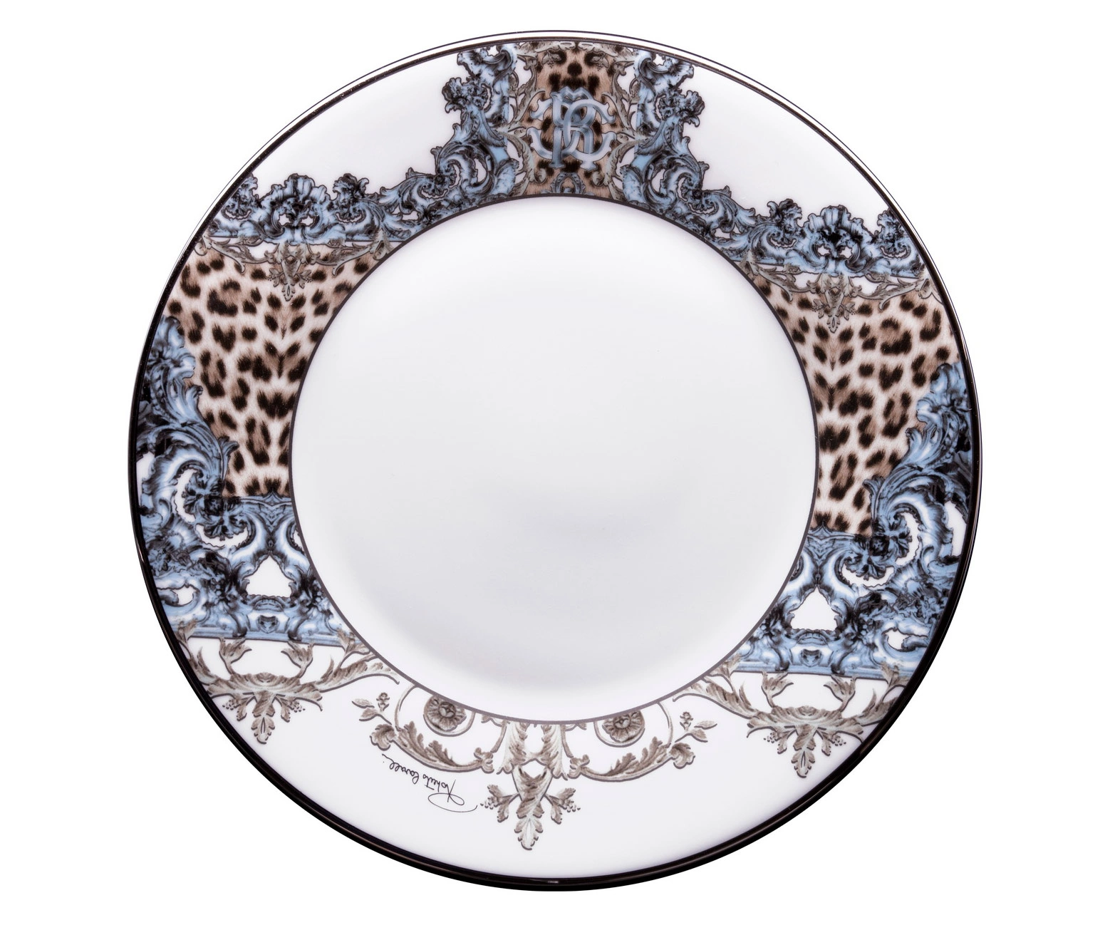 - Talerz deserowy Palazzo Pitti od marki Roberto Cavalli. Bogaty, zwierzęcy motyw z ornamentowymi wstawkami. Ręcznie malowane, platynowane wykończenia. Wykonany z porcelany kostnej. Możliwość mycia w zmywarce.