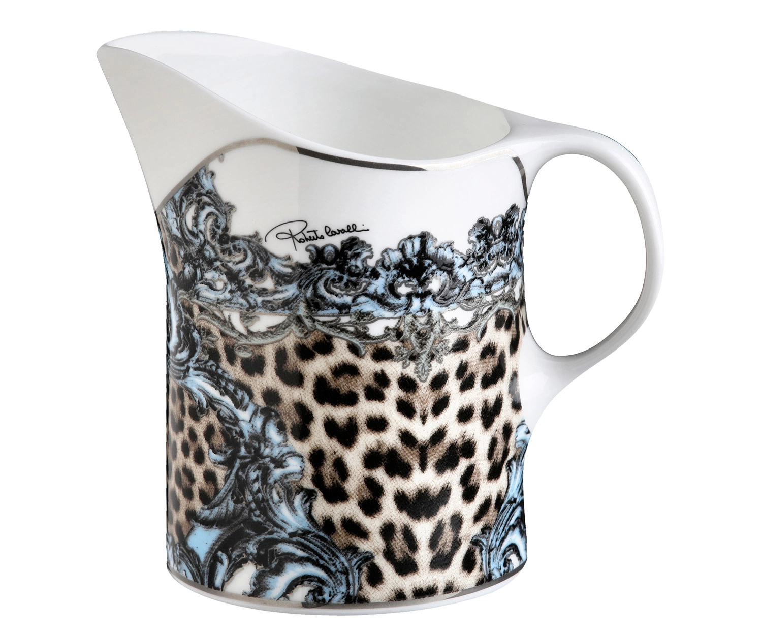 - Mlecznik Palazzo Pitti od marki Roberto Cavalli. Bogaty, zwierzęcy motyw z ornamentowymi wstawkami. Ręcznie malowane, platynowane wykończenia. Wykonany z porcelany kostnej. Możliwość mycia w zmywarce.